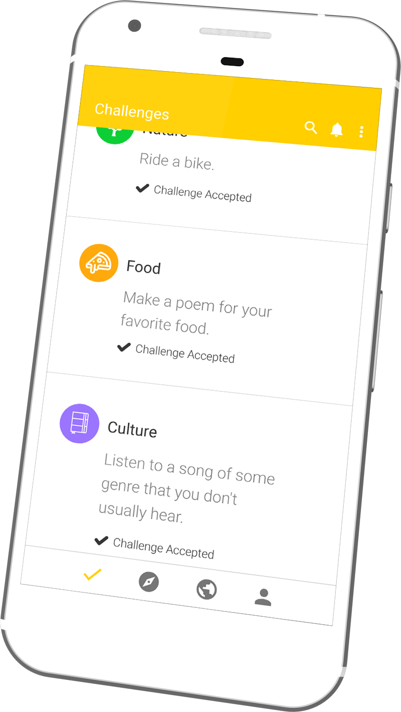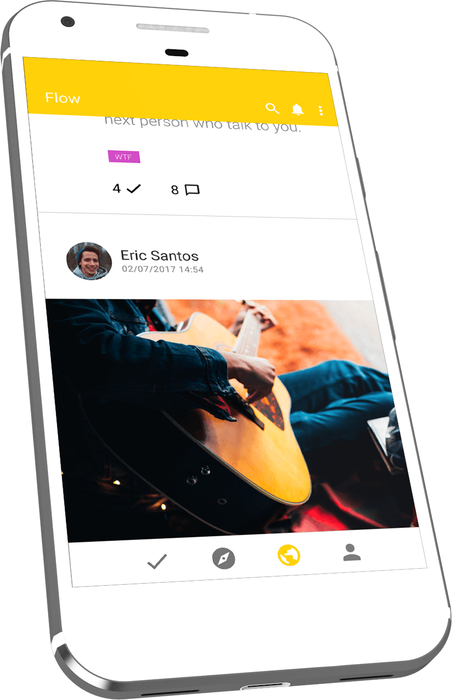 In Flow you see the experiences of your friends and other users, as well as being able to confirm and comment on their challenges.